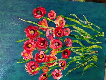 Participants will prepare a canvas background, paint various types of paper and create a composition to express individual creativity. Students will use many textures to develop personal style. No special skills needed, just a desire to have lots of fun with artist, Vicki Cearfoss!