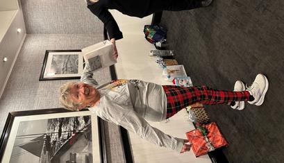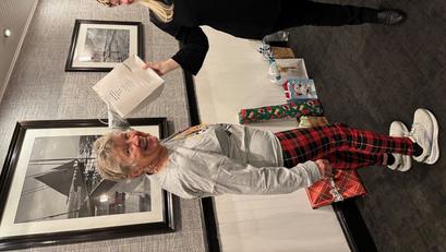 Thank you to everyone who attended KIFA’s Holiday Party in the Tea Room at Rams Head Shore House on December 3, 2025. Yummy food and friendship were on the agenda. Twenty percent of the total sales from our orders that day will be donated back to KIFA. Twenty-four people attended the event. Jason Young was the winner of the Paul Reed Smith guitar. The guitar raffle brought in $970 to benefit KIFA. Judy Tucker was the winner of the Charmtree Jewelry Studio Raffle Basket. The raffle basket brought in $192 to benefit the Cascio Clay Center. Pat Spinella was presented with an Unsung Hero Award for her volunteer service to KIFA. Margaret Tessier, KIFA’s Executive Director, was given an Achievement Award medal for “keeping the lights on at KIFA and more”. The Surprise Santa Gift Exchange topped off the party.