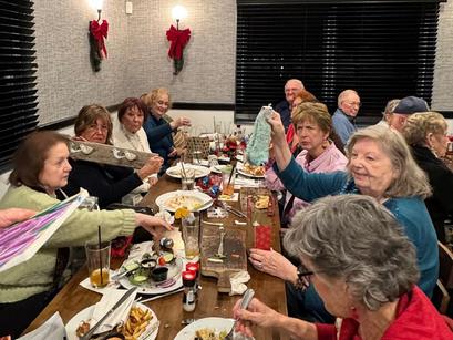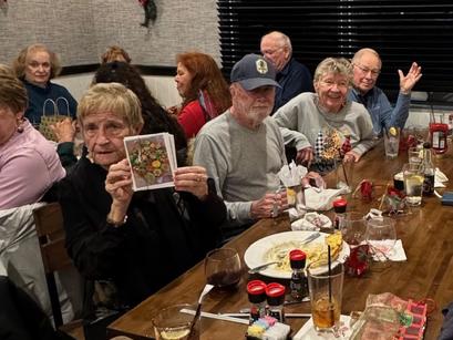 The Surprise Santa Gift Exchange topped off the party. Karen Pavlik’s surprise gift was shorebirds on driftwood art. Susan Thau’s surprise gift was a pair of toasty warm socks.