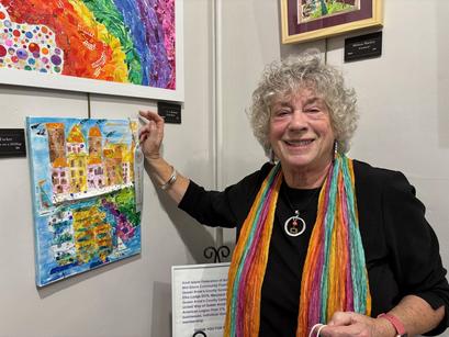 Amateur, Category D, Mixed Media/Collage: Honorable Mention – Judy Tucker for her collage “Little Houses on a Hilltop”.