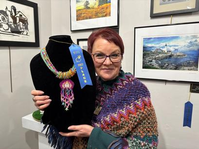 Category F, Amateur, Sculpture/Jewelry: First Place – Mimi Swigert for her jewelry “Looks Like Rain”.