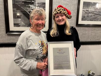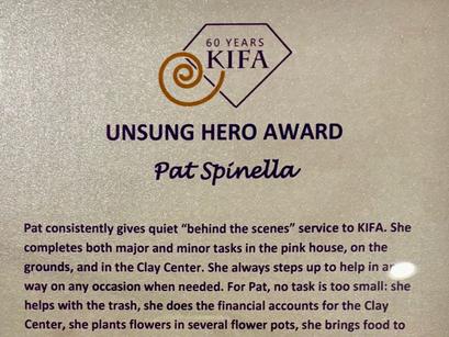 Melissa Craig presented Pat Spinella with the Unsung Hero Award for her volunteer service to KIFA.