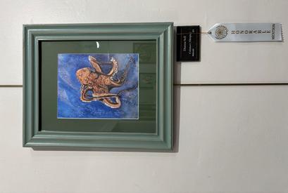 Amateur, Category B, Watercolors/Gouache/Alcohol Inks: Honorable Mention – Dianna Sell for her watercolor “Calamari (Octopus).